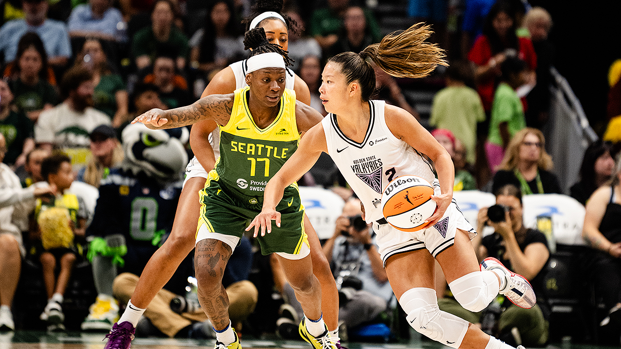 After a pit stop at Chase Center, the Golden State Valkyries head back on the road, facing the Storm in Seattle on Wednesday. Wednesday's game has an earlier start time than usual, tipping off at 12 p.m. PT. The Valkyries are 2-0 against the Storm this season, beating them 76-70 in a Commissioner's Cup game on June 14 and earning a 27-point win 84-57 on June 29.