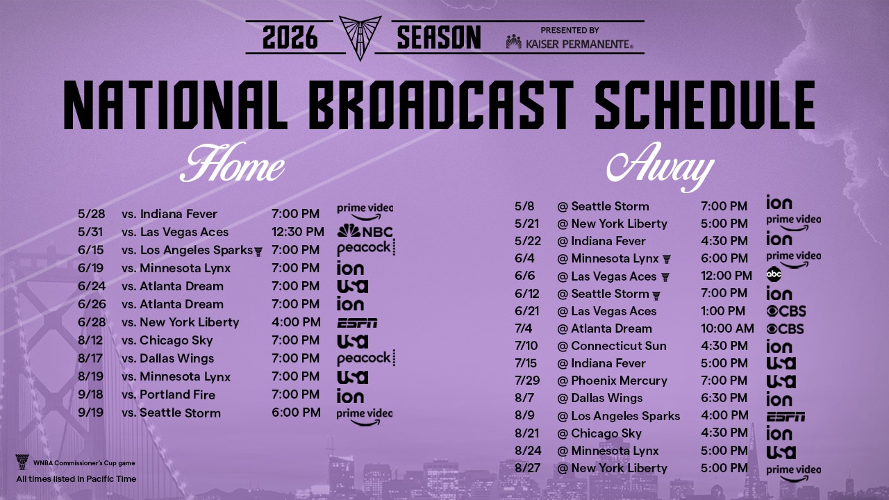 Golden State Valkyries 2026 Regular Season Broadcast Schedule (subject to change):