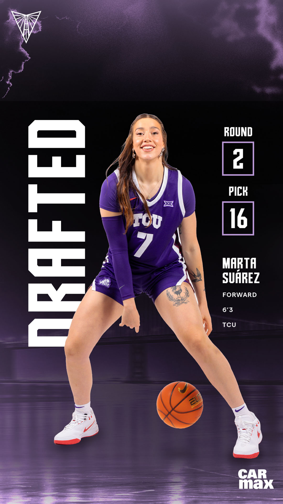 Suarez, 23, returns to the Bay Area after a collegiate career with Tennessee, California and TCU. The 6-3 forward is coming off a 2025 season where she averaged 17.1 points, 7.4 rebounds and shot 37.0 percent from deep for the Horned Frogs, earning All-Big 12 First Team recognition. Suarez started every game for California across two seasons, earning 2025 ACC All-Tournament Second Team honors in 2025, and was an All-SEC Freshman Team selection in 2021 while at Tennessee. Suarez represented Spain at the 2021 FIBA U19 Women's World Cup where she posted 6.7 points, 5.0 rebounds, 1.6 assists and 1.3 steals in 17 minutes per game.